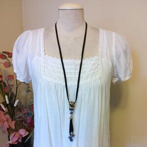 NEW Shelley Long Black Genuine Leather Art Deco Beaded Necklace