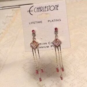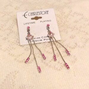 NEW Charlestone Silver Plated Pink Crystal Long Drop Dangle Earrings Women Jewelry Gifts