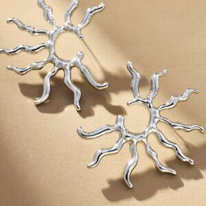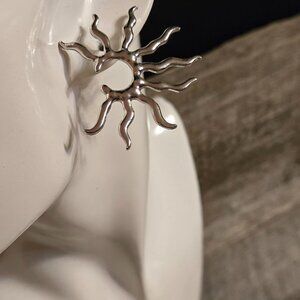 NEW Silver Sunburst Squiggle Post Earrings