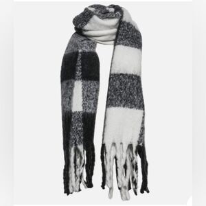 Black & White Buffalo Plaid Scarf features fringe detail