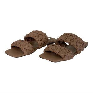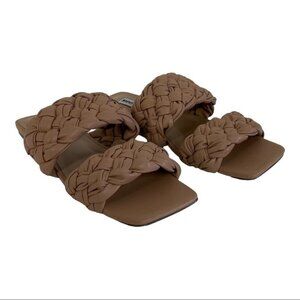 NEW Steve Madden Woven Sandals Slip On Slides Size 8.5 Nude Beige Tan Merrin