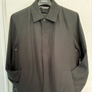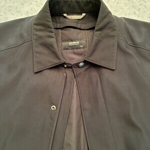 NEW. Strellson Trench Coat. Business class - FLY. Navy. Removable lining. Size US42 (EU Sz 52) Length from back neck = 34.5 in.; Sleeve length from shoulder seam = 23.5 in./ from inside armpit = 17 in. Fabric outer shell = 91% polyester 9% polyurethane.