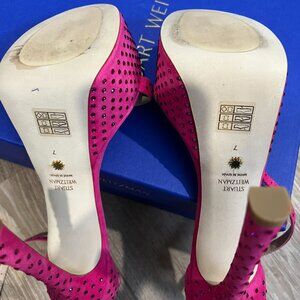 Brand new and gorgeous Stuart Weitzman Nudistcurve Hollywood Shine Platform Sandal, Magenta/Fuxia, Size 7 B