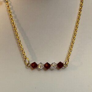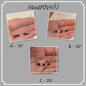925 Gold plated 20" chain, 1 1/2" Swarovski crystal bar with a lobster clasp.