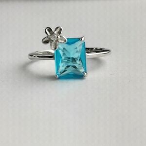 NEW Swiss Blue Topaz and diamond Flower ring size 8