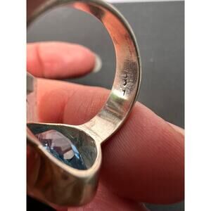 Genuine Swiss Blue topaz oval cut gemstone set in authentic 925 sterling silver. Measures a size 8.5. Total weight is 6.64 grams. Measurements in photos.