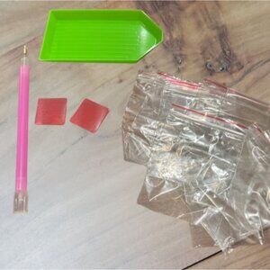 Note that the canvas itself is sticky so that the gems can stick. It's best to cut away at the outer protective sheet little by little or other things might stick onto the canvas if you are not careful.