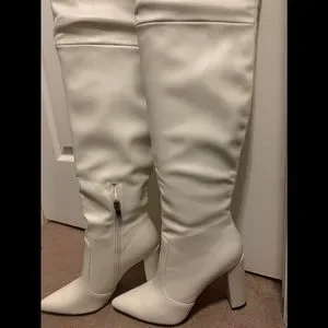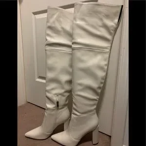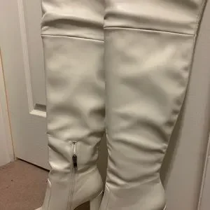 SOFT VEGAN LEATHER OFF WHITE THIGH HIGH BOOTS!