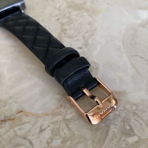 NEW Tahari Diamond Tank Style Quartz Watch Black & Rose Gold Faux Leather Strap