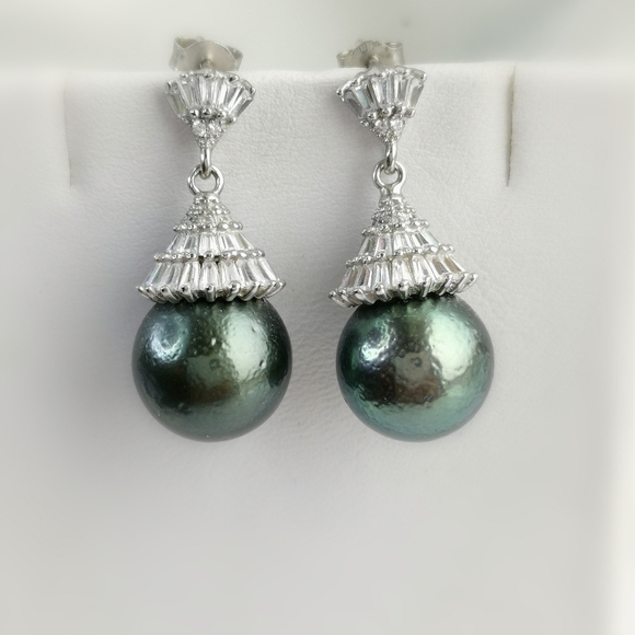 NEW Tahitian South Sea Pearl White Sapphire drop earrings