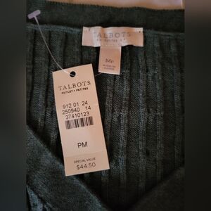 NEW Talbots Green Ribbed Sweater, Size Petite Medium