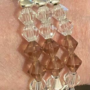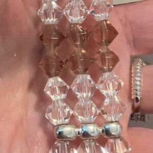 NEW Three-strand pink/clear glass crystals bracelet #1