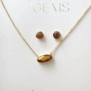 NEW - Tiger's Eye necklace & earring set - 14-karat Gold Plated Brass