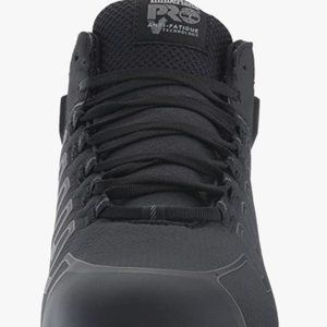 These Powertrain work shoes feature alloy safety toes, an internal metatarsal guard, and anti-fatigue technology for all-day comfort.