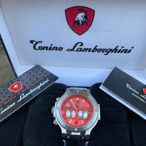 NEW Tonino Lamborghini Men's Chronograph Diamond Bezel Leather Strap Watch