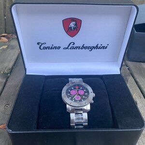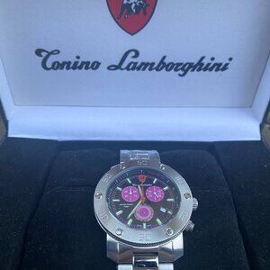 NEW Tonino Lamborghini Men's Chronograph Diamond Bezel Stainless Steel Watch