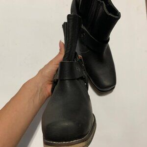 Edgy meets classic ✨ These Topshop black leather harness ankle boots are brand new and never worn (no box). Made with high quality black leather and finished with harness strap detailing, they bring effortless biker-inspired style to any outfit.