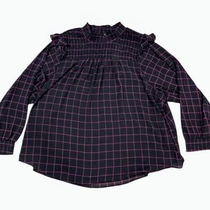 Brand new with tags Torrid Crinkle Chiffon Smocked Neck Lined Plaid Blouse