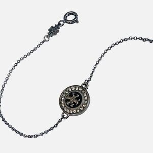 NEW Tory Burch Kira Gun Metal Pave & Enamel Pendant Bracelet Rtl $175