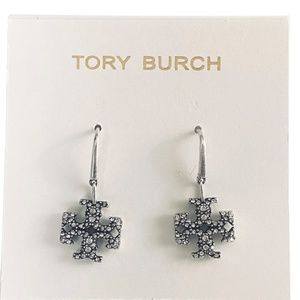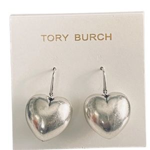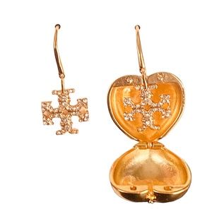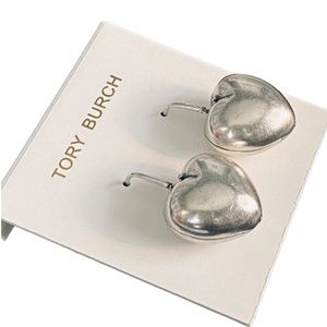 NEW Tory Burch SILVER Hidden Heart Locket Drop Earring Set $225