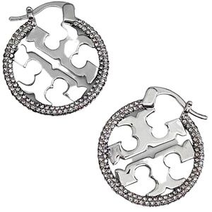 NEW Tory Burch SILVER PAVE Miller Hoop Earrings $305
