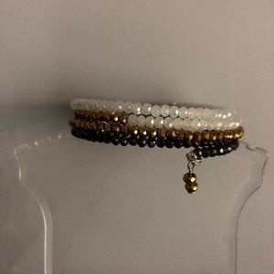 Handcrafted one-of-a-kind NEW gold, black, and cream colour seed beads on memory wire.