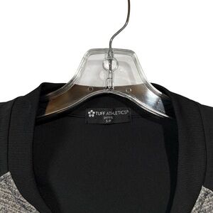 Brand new athletic jacket by Tuff Athletics. Features a heather grey textured front with contrasting solid black back and sleeves. Full-zip closure, ribbed hem, and two side pockets. Lightweight stretch fabric for comfort and movement. Perfect for workouts, walks, or casual everyday wear.