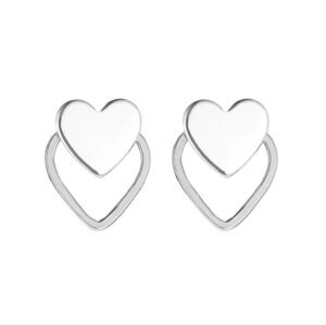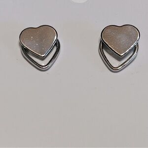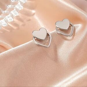 💎NEW Two For One-Double Heart Silver Post Stud Earrings