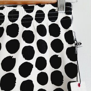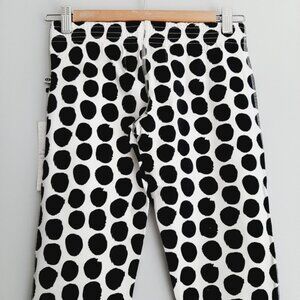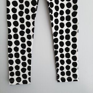 • Fun leggings in white and black watercolor/ ink style polka-dot pattern with elasticized waist and no pockets.