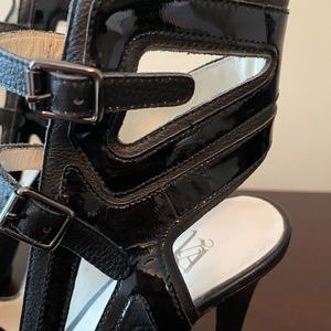 NEW VELVET ANGELS Black Leather Platform Heels sz7