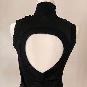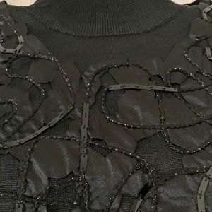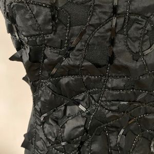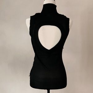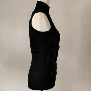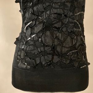 New and absolutely perfect, sleek black 100% Silk top with embellishments interspersed with the fabric, amazing cutout in the back, Size Small and Made in Italy 🇮🇹, shoulders 12.5”, chest 18.5”, waist 15”