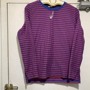 Gap Crewneck T-Shirt, Midweight, Size S, Red, Blue Stripe, 100% Cotton, Long Sleeve, Sides Small Split, Pullover, Good Condition, Brand New, Casual T-Shirt, Great Look, Great Fit
