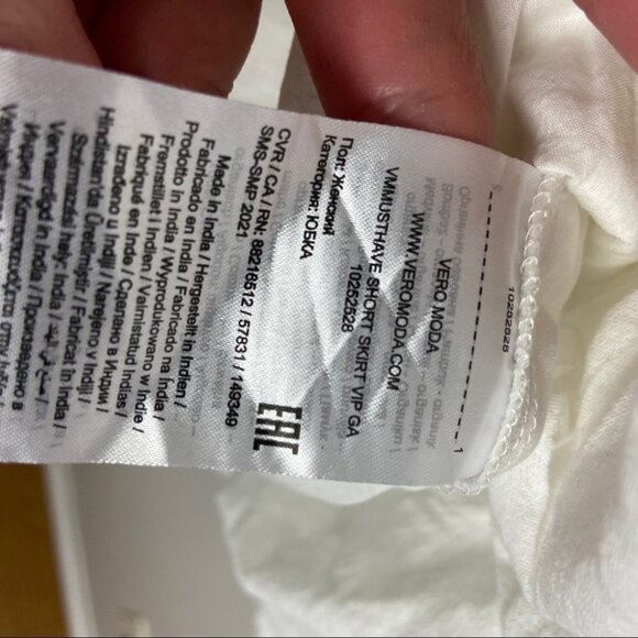 Vero Moda Must Have Short Mini Skirt in White in Women's Size Small. Made in India. 100% cotton. From Nordstrom. Machine washable. Lined. Brand new without tags. No flaws.