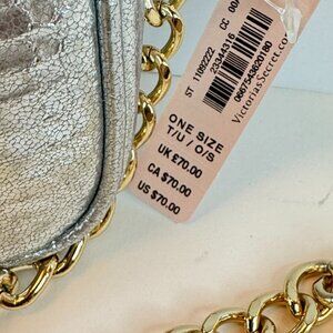 NEW Victoria's Secret Shoulder Bag Purse Shinny Silver with Gold Chain Zipper