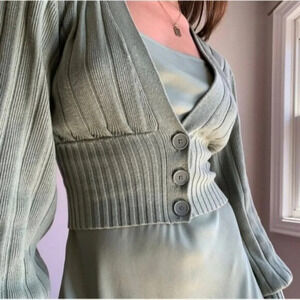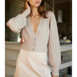 NEW WILFRED Plunge Front Cardigan Wool Sweater Basalt Grey Size XXS ARITZIA