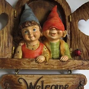 NEW WITH TAG Adorable Jonas & Catie GNOMES Welcome Sign Resin