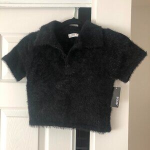 NEW WITH TAG Black fuzzy cropped cardigan size small