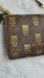 One interior zippered pocket, one front wall slip pocket, and eight back wall card slots.