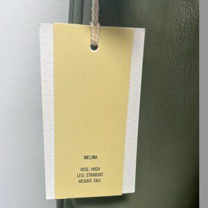 New high rise, sage green Melina pants. They are straight leg and tall fitting.