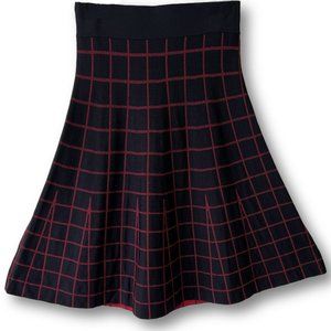 NEW Window Pane check High Waisted BLK Red Midi Skirt S