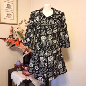 NEW Women’s Elegant Pea Coat Black White Floral Lined Trench Coat ¾ Sleeve 12 L
