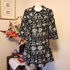 NEW Women’s Elegant Pea Coat Black White Floral Lined Trench Coat ¾ Sleeve 16 XL