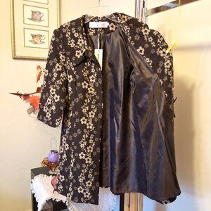 NEW Women’s Elegant Pea Coat Brown Cream Floral Lined Trench Coat ¾ Sleeve 18 XL