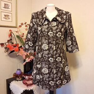 NEW Women’s Elegant Pea Coat Brown White Floral Lined Trench Coat ¾ Sleeve 16 XL