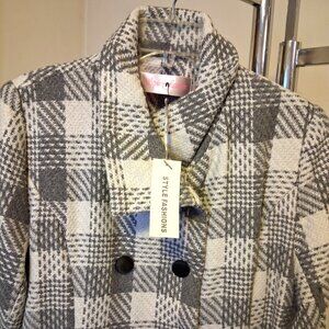 NEW Women’s Gray White Double-Breasted Lined Trench Coat Winter Midi Length Warm Outerwear Size 16 XL