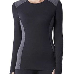 NEW - Women's Microfibre Thermal Crewneck Top - Black Grey, Size S