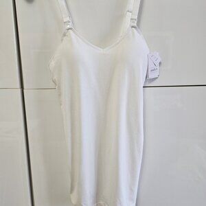 Take on your day with confidence in the Nursing Seamless Cami from Auden™. This seamless nursing tank top provides comfort, coverage and convenience, making it a great pick to wear for anything from working out to running errands to sleeping. A built-in shelf bra gives a little extra support, while padding provides coverage and an added layer of protection against leak-through. The straps can be worn as a traditional tank top or crossed in the back for two options to best suit your comfort. When it's time for nursing or pumping, the front can be unclipped from the straps with one hand for easy access.