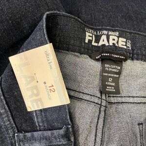 NEW YORK & COMPANY Women's Ultra Low Rise Flare Leg Dark Jeans - Size 12 - NWT.