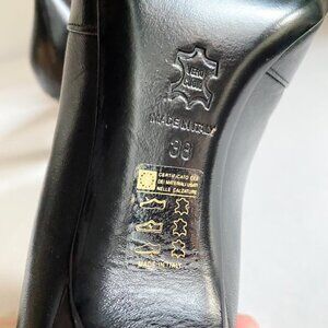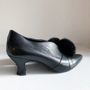 Introducing a stunning addition to your shoe collection - the Yosh Collection Black Leather Pom Pom Detail Retro Style Ankle Booties in size 8 US / 38 EU.