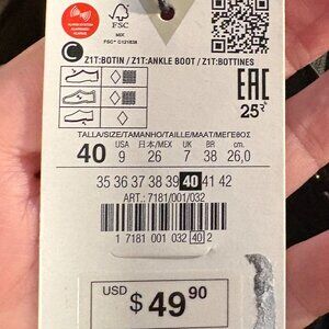NEW (never worn) ZARA ALMOND TOE CHELSEA ANKLE BOOT W/ SIDE ELASTIC INSERTS, METAL MINI RIVET STUDS & PULL TAB...